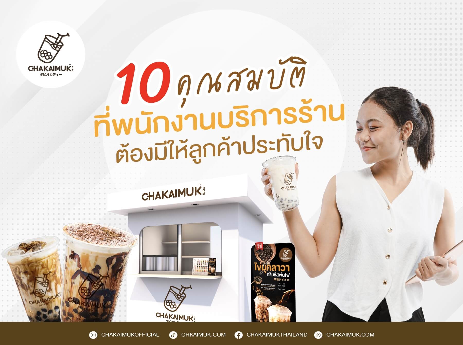 และนี่ก็คือ 10 คุณสมบัติของ พนักงาน บริการ ร้าน ต้องมีให้ ลูกค้า เพื่อสร้างความประทับใจที่เรานำมาฝากทุกคน ส่วนใครที่อยากเป็นเจ้าของ ร้าน ชาไข่มุก ชวนขายดี สร้างอาชีพ มีรายได้ ก็สามารถมารวมลงทุนที่ ชาไข่มุกดอทคอม แฟรนไชส์ ชาไข่มุกที่ครบวงจรพร้อมเปิด ร้าน คืนทุนไว ได้กำไรเร็ว